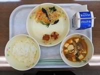 献立:牛乳 ごはん 麻婆豆腐 揚げ焼売 切干大根ナムル