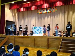 今年の6年生を送る会は、数年ぶりにチャレンジゲームを取り入れた活動を行いました。4・5年生による準備企画がすすめられ、当日は、6年生と1~3年生の縦割り班を迎え、大いに楽しんでもらいました。