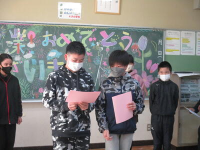 本校6年生29名が無事卒業しました。今年度は4・5年生が在校生代表として式に参加しました。卒業生の最後の立派な姿をそれぞれの目に焼き付けることができました。