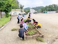 1学期もあと5週間となりました。残りの1学期も、きれいになった校庭で、校舎で、子供たちは、気持ちよく、勉強に、運動に、取り組むことができると思います。ありがとうございました。