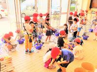 今日は、1年生と2年生がプール活動を行いました。まだ水に慣れていない子は、水の中を歩く活動を行いました。最初は、腰まででしたが、徐々に片まで水に入っていました。水に慣れている子は、泳ぐ活動も行っていました。みんな、上達しています。夏休み前には、もっと上達していますよ。
