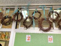 1年生が育てた朝顔のつるが、リースになり、1年生教室廊下側に飾られています。これから、木の実などの飾り付けをするそうです。どんなリースが出来上がるか、楽しみです。