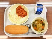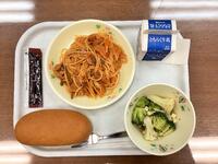 「スパゲティミートソース」や「ビーンズサラダ」の具材は、食べやすい大きさにカットされています。だいたい3mm四方でしょうか。たくさんの具材をこの大きさにカットすることは、とても大変だと思いました。調理員さん方に感謝です。食べやすい大きさにカットされた具材は、ソースやドレッシングに調和し、とてもおいしかったです。ごちそうさまでした。