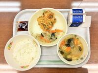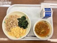 献立:牛乳 和風ビビンバ丼 さつま汁