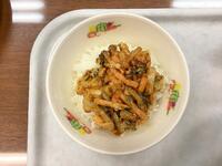 献立:牛乳 野菜かき揚げ丼 切り干し大根のナムル みそ汁