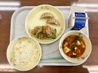 献立:牛乳 ごはん 焼き餃子 麻婆豆腐 中華くらげ和え