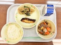 献立:牛乳 ごはん ミナミカマス西京焼き おひたし 豚肉と大根の煮込み