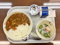 献立:牛乳 ごはん 冬野菜カレー 海藻サラダ