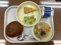 献立:牛乳 ハチミツパン プレーンオムレツ グリーンサラダ かぼちゃシチュー