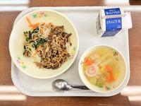 「五目味噌汁」の「五目」には、五種類という意味があるそうです。本日の味噌汁は、だいこん、こまつな、生揚げ、じゃがいも、人参とちょうど5種類の具が入っていました。五目焼きそば、五目ごはん、五目寿司などの料理があります。それらの料理は、5種類の具が入っているから「五目」というのではなく、「いろいろな具がたくさん入っている」という意味で「五目」が使われているらしいです。今日の「五目味噌汁」は、どちらの「五目」なのでしょうか。