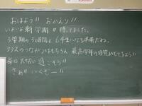 朝、校舎内を巡回すると、先生たちが黒板に書いた子供たちへのメッセージとイラストが目に入りました。どのメッセージも、子供たちへの気持ちがあふれる素敵なメッセージでした。大沢小学校の皆さん、このメッセージのとおり、令和4年3学期も「明るく、楽しく、美しく」がんばりましょう。