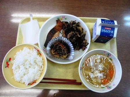 牛乳 ご飯 サケネギ塩焼き ひじきの炒り煮 かみなり汁