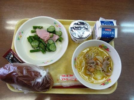牛乳 黒ロール ちゃんぽん アスパラとハムのマリネ 県産ヨーグルト チョコレートパテ