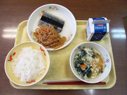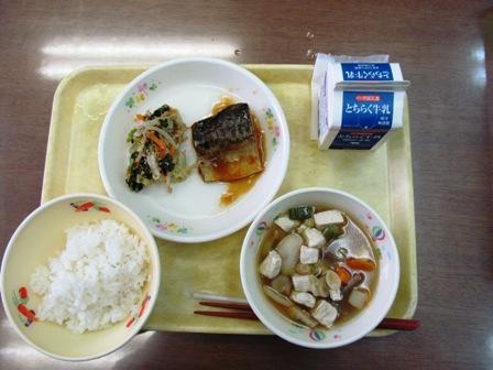牛乳 ごはん 鯖の味噌煮 ごま和え けんちん汁