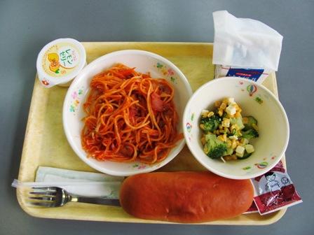 牛乳 ミルクパン スパゲティナポリタン ブロッコリーサラダ レモンゼリー チルドチョコ
