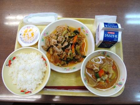 牛乳 ごはん 豚キムチ さつま汁 十五夜デザート