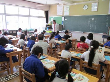 (この日、1年生は、となりの花壇で、山口老人会の皆様と、チューリップの球根を