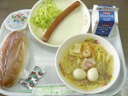本日のメニュー:牛乳、ホットドック、ちゃんぽん、フルーツゼリー