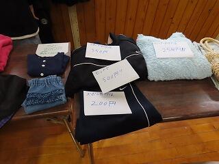 その後は、ワークショップとして、店員側とお客側に分かれて洋服屋さんを開きました。長机やいすにレイアウトを考え展示し、値段を考えてつけました。