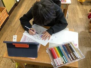 鉛筆を持つ力加減を調節して、グラデーションにする子などそれぞれが楽しそうに工夫を凝らしていました。
