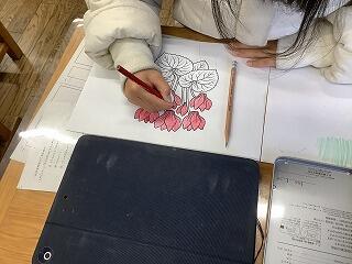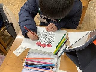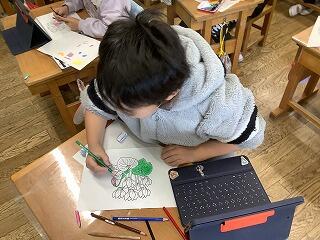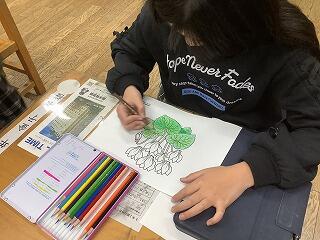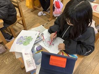 写真を見ながら、本物に近づけようと塗る子、好きな色をたくさん選んでカラフルに仕上げる子、