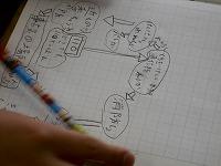 警察、消防署、病院の連携体制について教科書などから調べ、自分なりの得意な方法でまとめています。文章でまとめたり、絵やチャート図でまとめたりと、様々な方法が見られます。自分自身が理解しやすい方法で考えを深めている様子がうかがえます。