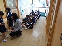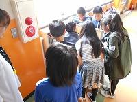 校舎内の消火設備についても学習をしています。消火栓、警報ベル等の仕組みや場所を確認しています。