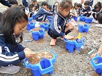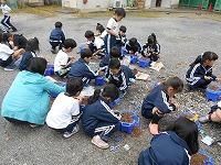 自分に割り当てられた植木鉢に土をいれ、種を一粒一粒丁寧に土に開けた小さな穴にまいていきました。1年生みんな真剣な表情です。これからの観察がとても楽しみです。水やりがこれからの日課になります。