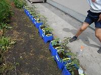 隣のクラスの2年生の庭先には、様々な野菜の苗が順調に生長しています。
