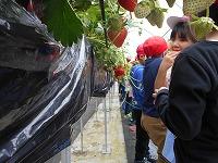 幾棟もあるビニルハウスで作業されている様子、摘み取りやすい高さに整然と並んでいるいちごの苗を見学して、子供たちもとても感動していました。上学年は今週末に体験する予定です。