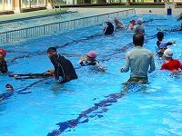 クロール、背泳ぎ、平泳ぎ、それぞれの腕や足の動かし方、上体の横回転、息継ぎ等、基本的な動作を一つ一つ確認しました。