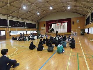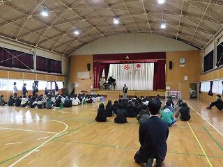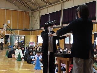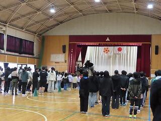 今日はクリスマス、明日からは冬休みということもあり、子どもたちの表情には、わくわくの気持ちがあふれていました。年末にしては、体育館はそれほど冷え込んでいませんでした。