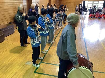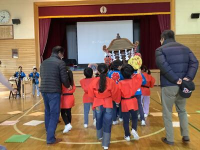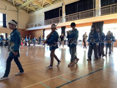 12/4(木)6校時に、3~6年生の総合的な学習の時間「チャレンジ!発信!私たちの伝統」で、お囃子や獅子舞の練習がありました。本日も芹沼獅子舞保存会の3名の方にお世話になりました。ありがとうございます。はじめて、体育館でのそれぞれの練習になりました。本番が楽しみです。