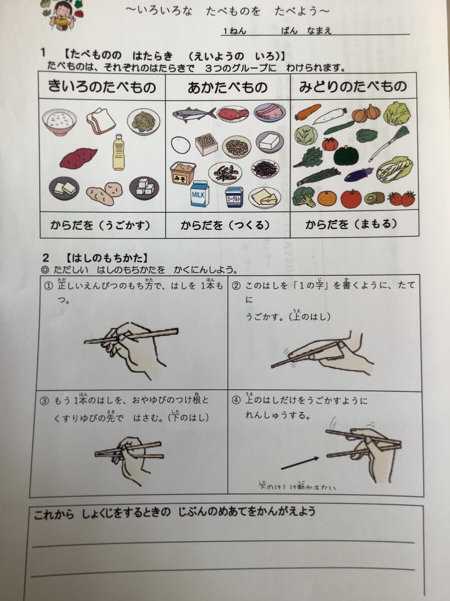 食育も日頃の習慣が大切です。ぜひ、ご家庭でも、学んだことをお子さんから聞きながら、お子さんが少しずつがんばることができるようにご支援よろしくお願いいたします。