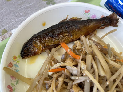 本日の献立「ご飯・牛乳・いわしの生姜煮・