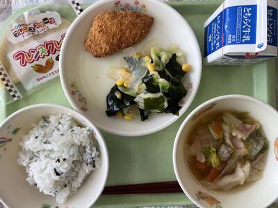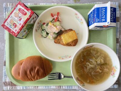 さっぱりイタリアンサラダとコロッケで、今日は多国籍な給食でした。