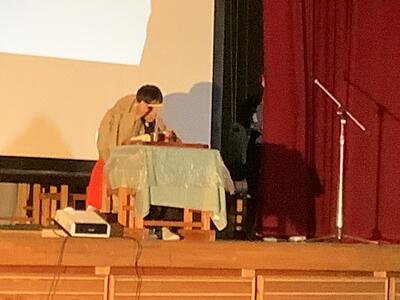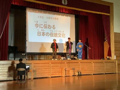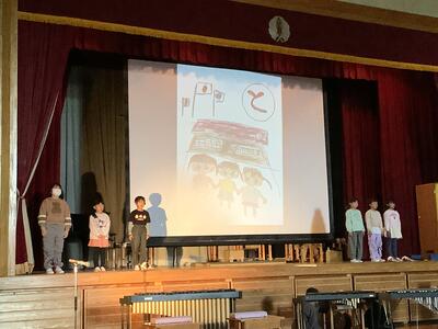 1・2年生「サンタパスポート」 3年生 「まいにちがプレゼント」 「誕生日あてゲーム」 「うさぎマジック」 4年生 「にげてさがして」 「ええところ」 5・6年生「なぞかけの焼き芋屋」 (民話の中から昔話) |