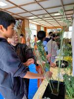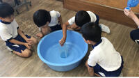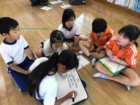 先生の説明を聞いて、トドポン班(1~6年生の縦割り班)で、上級生がリードしながら、一生懸命活動していました。