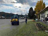 1~3年生は花壇のチューリップ抜き、畝づくり、マルチかけをしました。