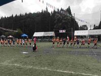 予報が雨だったので降る前に揚げてしまった万国旗と、みんなの着ている法被で、まるで本番のようです。