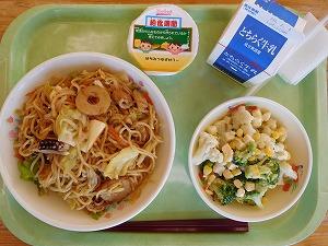 今日の献立は,「牛乳・大盛り焼きそば・温野菜サラダ・ゼリー」でした。今年最後の給食を,しっかりといただきました。ごちそうさまでした。1年間,大変おいしくいただきました。来年も,よろしくお願いいたします。