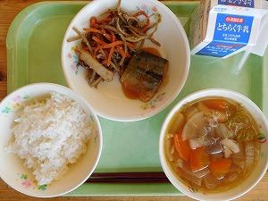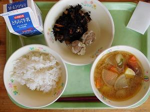 今日の献立は,「ご飯・牛乳・とろあじ塩焼き・五目ひじき煮・豚汁」でした。今日は,純な和食という感じです。特に,とろあじ塩焼きと豚汁が印象に残りました。今日も,おいしくいただきました。ごちそうさまでした。