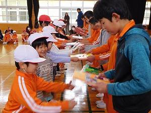 追伸:給食の後,1年生の発表会がありました。みんなで当てるクイズでした。1年生,がんばりましたね。