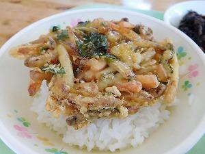 今日の献立は,「かき揚げ天丼・牛乳・野菜のごま和え・みそ汁」でした。今日も,おいしくいただきました。ごちそうさまでした,完食です。給食も,つくる人の気持ちが伝わってきます。調理員さん,ありがとうございます。給食って,やっぱりいいですね。
