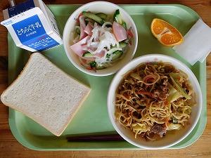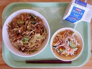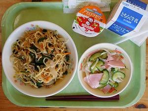 今日の献立は,「牛乳・大盛り焼きそば・海藻サラダ・パイナップル」でした。久しぶりの焼きそば,おいしかったです。ごちそうさまでした。今日は,午前中から雨模様で,肌寒さも感じました。お互いに,健康管理には十分注意しましょう。