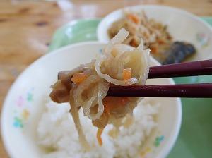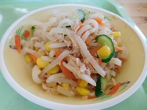 今日の献立は,「きなこ揚げパン・牛乳・鶏肉生姜焼き・根菜サラダ・春雨スープ」でした。今回は,「根菜サラダ」に注目してみたいと思います。どんな食材が入っているのでしょう,見てみましょう。「ごぼう・レンコン・にんじん・キュウリ・コーン」の組み合わせだったと思います。温かな春雨スープもうれしいですね。今日の献立も,バランスのとれたメニューになっていました。給食は,本当に素晴らしいですね。今日も完食,ごちそうさまでした。