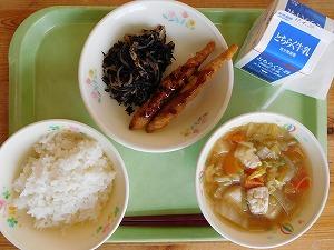 今日の献立は,「ご飯・牛乳・ししゃもフライ・五目きんぴら・みそ汁」でした。今日もおいしくいただきました。私は,「五目きんぴら」ファンだということを,今回再確認できました。今日も,完食です。ごちそうさまでした。