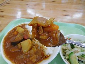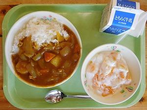 今日の献立は,「ご飯・牛乳・夏野菜カレー・ツナサラダ・県産ヨーグルト」でした。夏野菜カレーは,夏にふさわしい味わいでした。特に,「轟小ファーム」で収穫したばかりの「ジャガイモ」のおいしさは,格別なものがありました。まさに,地産地消です。今日も完食,おいしくいただきました。ごちそうさまでした。