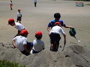 今日の献立は,「コッペパン・牛乳・ハンバーグトマト煮・グリーンポテト・野菜スープ」でした。今日も,おいしくいただきました。ごちそうさまでした。最近では,野菜のおいしさというものを特に感じられるようになってきました。これも,給食のおかげかもしれません。ありがたいことです。家でも,バランスのとれた食事に心がけたいものです。追伸:早朝から,体力テストの準備手ある「ソフトボール投げ」のライン引きを御紹介します。4~6年生と先生方との息の合った一コマでした。