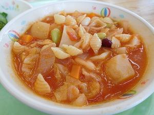 今日の献立は,「コッペパン・牛乳・オムレツ・イタリアンサラダ・ミネストローネスープ」でした。30日~31日と4年生の宿泊学習に行っていましたので,私にとっては,久しぶりの給食の検食でした。とてもおいしくいただきました。ごちそうさまでした。
